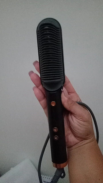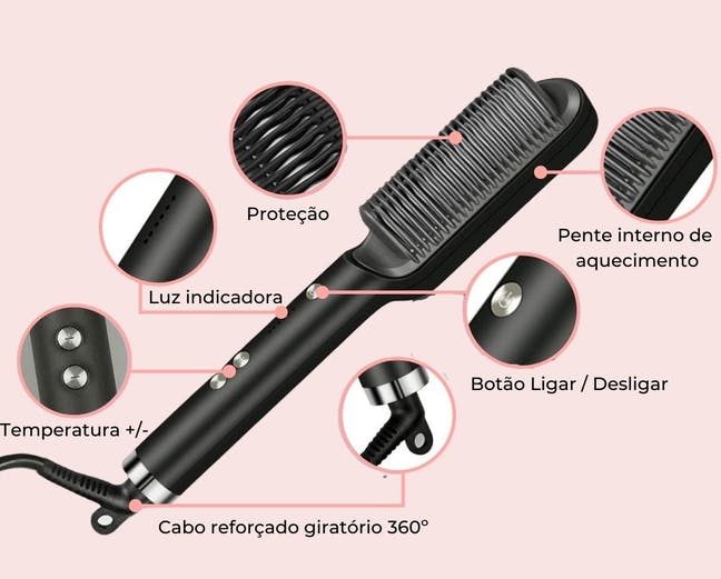 A Escova possui placas de cerâmica que garantem o aquecimento contínuo da escova, neutraliza o frizz e auxilia a desembaraçar os fios.